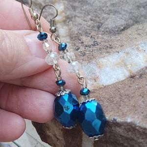 SALE Blue Jewelry Crystals Silver Earrings Sparkling Boho Lightweight