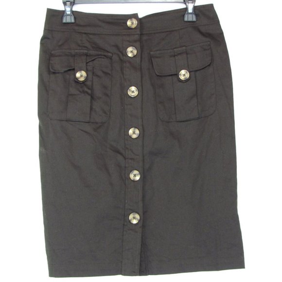 SALE! Buttons Cargo Brown Pencil Knee Skirt