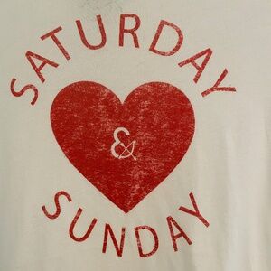 ☀️SALE☀️ CHA SOR Graphic White T-Shirt. Super Cute! 100% Cotton. Size Large, but fits snug (more like a Medium). Color: White w/Red Graphic, "Saturday & Sunday". Condition: Very Good; gently worn; well maintained; no stains, marks, holes, or rips.