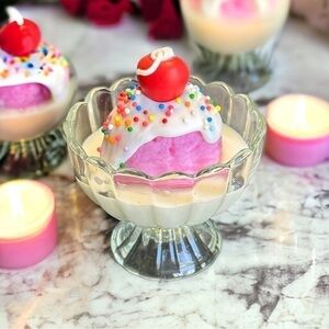⚠️SALE Candle // Handmade Pink Ice Cream And Sprinkles Candle SEND OFFERS🥳
