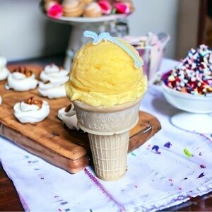 ⚠️SALE Candle / Handmade Yellow Ice Cream Cone Shaped Soy Wax Candle SEND OFFERS