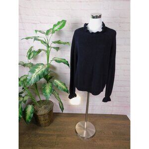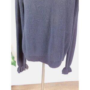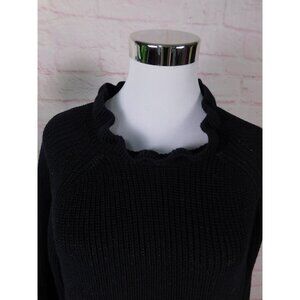 SALE CeCe Black Cotton Ruffle Neck Cuff Sweater Large Classic Preppy
