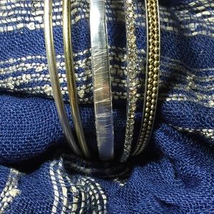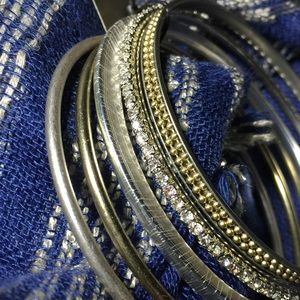 Chico's 5-piece bangle bracelets in silver/gold tones, rhinestones. Each different from the other.