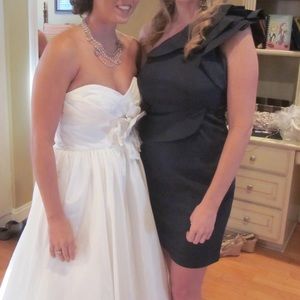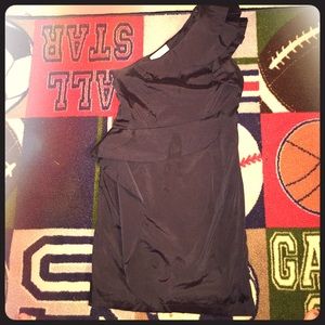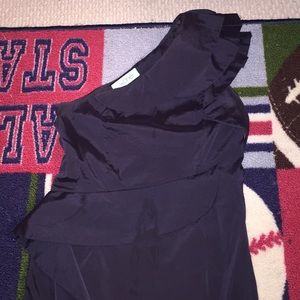 Navy One Shoulder Cocktail Dress with ruffle detail on shoulder