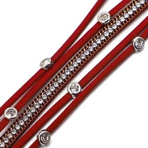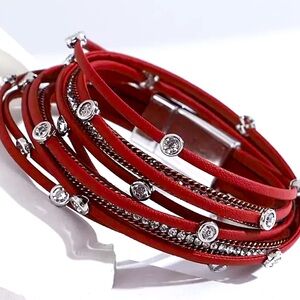 SALE Crimson Red Layered Leather Bracelet Cuff