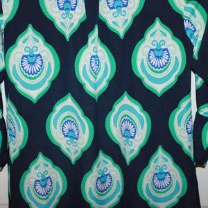SALE: Crown & Ivy Navy/Turquoise Geometric and Monkey Design Shift Dress Size 4