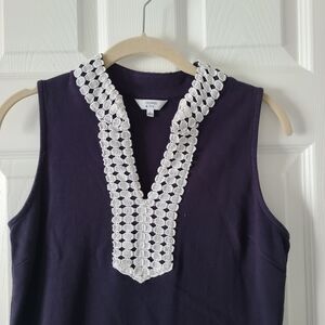 Crown & Ivy Navy Blue Sleevelss Shift Dress With White Lace Trim in Size S