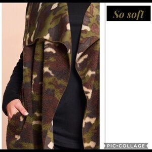 Diva Plus Camouflage Vest. Vest comes past hips & had versatile collar. Warm & very soft. True to size.