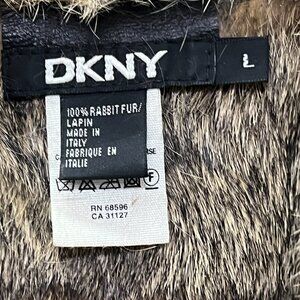 DKNY Brown Leather & Fur Coat