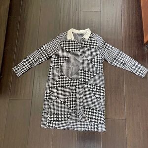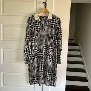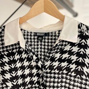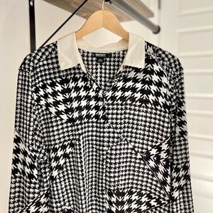 SALE! DKNY Shirt-Dress Black & White Houndstooth Pattern, Silk: Size L