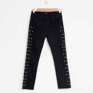 SALE DRIFTWOOD Candace Studded High Waist Straight Crop Black Jeans 26