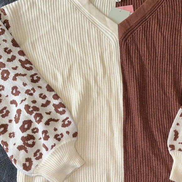 SALE - Eesome Women's Medium Color block Animal Print Chunky Knit Sweater Brown