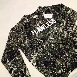 brand new with tags ElevenParis 'LIFE IS A JOKE' "Flawless" Sweatshirt. This Jungle-print camouflage adds a lively look to this slouchy sweatshirt. 'Flawless' lettering cuts a clean line across the front. Crew neckline and ribbed edges. Long raglan sleeves. French terry: 80% cotton; 20% polyester. Length: 24"