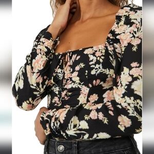 Free People HILARY Printed Top Blouse Black Combo Floral New!