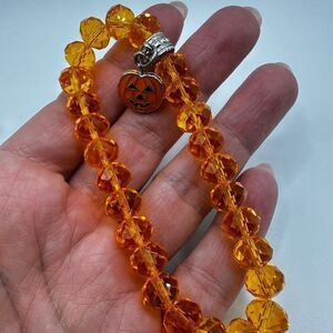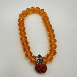 SALE! Faceted orange crystal glass beaded bracelet with jack-o-lantern charm!