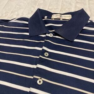 Fairway & Greene Navy Blue Golf Polo With White & Tan Stripes Size Large