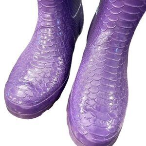 Great rain boots in purple with an embossed snakeskin print. Super cute!