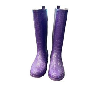Fashion Bug Women's Size 9 W Purple Buckle Rubber Embossed Snake Rainboot 14.25"