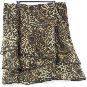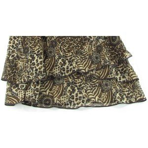 SALE! Floral Leopard Sheer Ruffle Brown Midi Knee Skirt