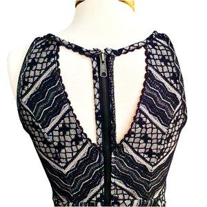 SALE Free People Miss Connections Black Lace Nude Lined Mini Fit & Flare Dress 0