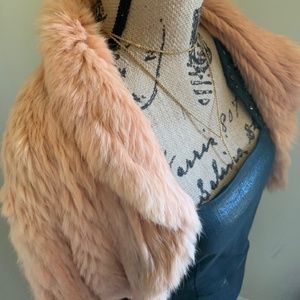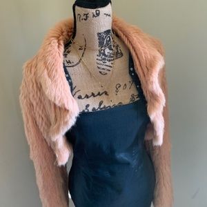 This cute jacket is made from 100% genuine rabbit fur by moussy - a popular Harajuku Japan brand. Only worn a handful of times and in great condition. This jacket is incredible soft and is a very light pink color. It is cropped in both the length and sleeves for a chic modern bolero-ish look! This jacket can be worn for a nice brunch or a night out on the town! Size S (2-4)