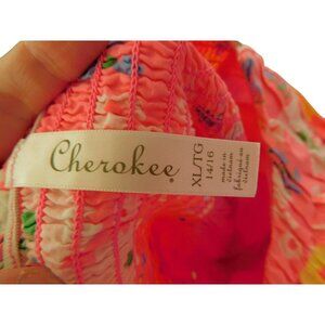 SALE Girls Cherokee XL 14/16 Pink Floral Ruched Dress With Smocked Back & Cross