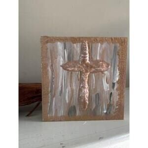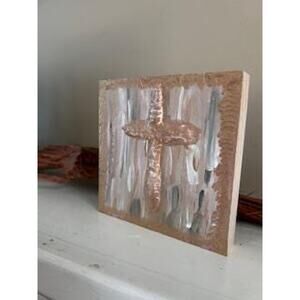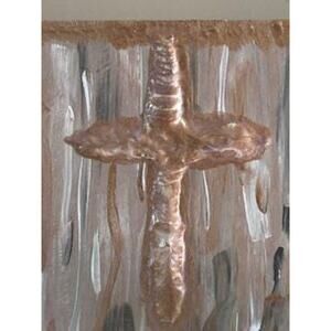 SALE Gold Cross Wood Painting HandPainted Wall Art 5x5 Block Textured White Gold