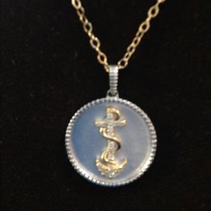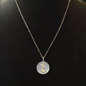 This beautiful sterling silver and gold-vermeil necklace is a beautiful classic with a nautical theme. Accented with real diamonds and stamped by SURF AVD 925 on the back.