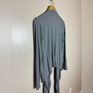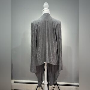 MEASUREMENTS: Approx 20” pit to pit (open fit), 43.5” shoulder to bottom of drapey front hem, 23.35” shoulder to hem back, 20.75” sleeve inseam