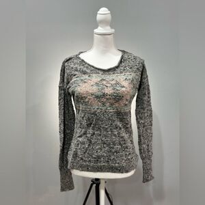 SALE! Gray Pink Rose Knit Sweater Size M EUC