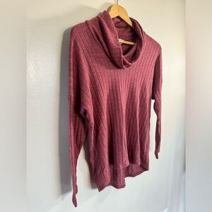 MEASUREMENTS: 22.75” pit to pit, 24” shoulder to hem front, 27” back, 14.5” slight dolman sleeve inseam, 8” tall cowl