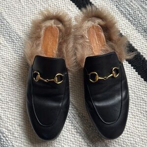 ⚡️SALE⚡️ Gucci Princeton Fur Mule Slide Loafer Leather Horsebit Shoes