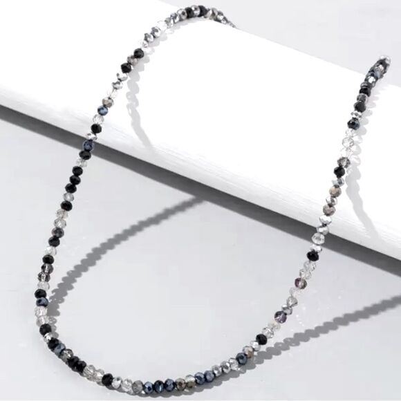 SALE Handmade Labradorite and Black Moonstone Faceted Crystal Stone Necklace