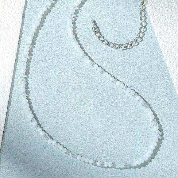 SALE Handmade Selenite and Moonstone Faceted Crystal Quartz Stone Necklace
