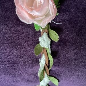 Purchased in Germany 🇩🇪 Beautiful pink and red rose floral headband with green leaf foliage and white and brown braided design interlaced with small white flowers. Silk flowers. Satin band. Elastic back. Perfect for Frühlingsfest (Spring Festival), Oktoberfest, or weddings.