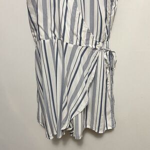 Hollister Blue and White Striped Wrap Front Cap Sleeve Romper NWT