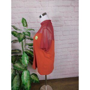 Channel the fierce energy of She-Ra Catra with this bold Hot Topic cosplay-inspired T-shirt. Featuring a striking orange design with sheer mesh paneling and a She-Ra emblem, this top is perfect for fans who want to blend fashion with fandom. Ideal for cosplay, casual outings, or conventions, this top brings a unique touch to any wardrobe. The back graphic and high-quality fabric make it comfortable yet eye-catching. New with tags, this piece is ready to empower your style. Approximate measurements: Length 27", Pit to Pit 21". Features: Short Sleeve T-Shirt Solid Machine Wash Size: Womens XL Condition: New With Tags