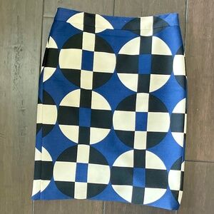SALE! J. CREW No. 2 Pencil Skirt Black/Blue/Cream Geometric Circle Print: Size 4