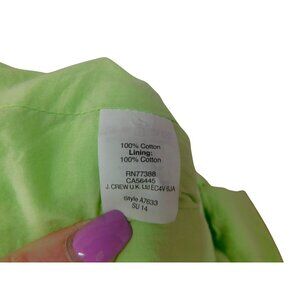 This vibrant lime green strapless dress from J. Crew combines elegance and comfort. Made from 100% cotton, its fitted design flatters your figure effortlessly.