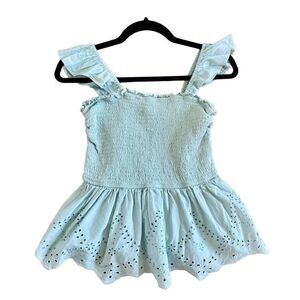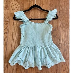 🚨 SALE Japna mint green smocked ruffle eyelet top size m