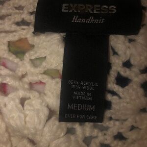 SALE Just in Like New Vintage Cream Express handknit crochet floral sweater