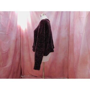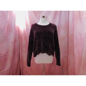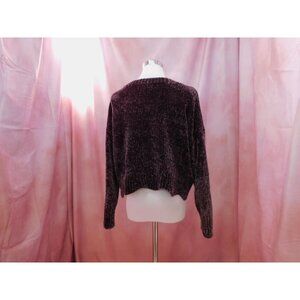 SALE LA Hearts Chenille Sweater Plum Purple Crop Long Sleeve Women XS