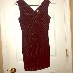 Great Black dress! Front has diagonal sheer fabric with a nude lining.