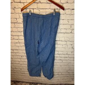 LL Bean women's size 10 pants blue white pinstripe elastic waist tie string lightweight