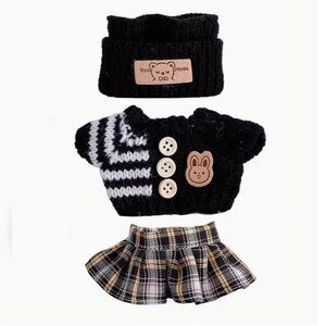 Adorable plaid skirt & sweater to complete your Labubu's wardrobe! Includes matching ear muffler with teddy bear emblem.
