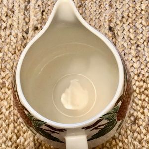 I bought this in 1996 along with all of the rest of the pieces to this dinner set. It is absolutely gorgeous. I used this only at holidays and very seldom at that. It is a large sized pitcher and in perfect vintage condition. No cracks, chips or stains. minor discoloration on bottom rim due to storage.