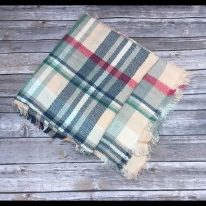 ⛄️SALE⛄️ Light pink/navy plaid blanket scarf #20