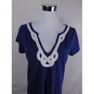 SALE Lilly Pulitzer Dress Womens Medium Blue White Pima Cotton Embroidered Neckl