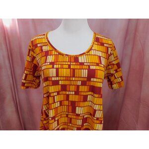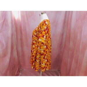 This LuLaRoe XS tunic is a must-have for lovers of bold and colorful designs! Crafted from a soft and stretchy blend of 96% polyester and 4% spandex, this tunic offers lightweight comfort with a retro-inspired geometric print in vibrant orange, yellow, and red tones. Perfect for casual outings or styled up with leggings and boots for a chic fall look.