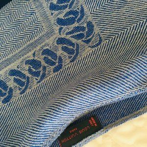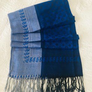 SALE Luxe Large LV Louis Vuitton Light and Dark Blue Wool Scarf Wrap Huge 28x75"